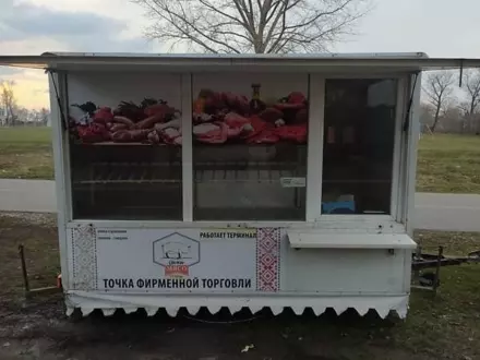 торгівельний павільйон с док.нова резина,холодильна установка.світло 12/220.робоча поверхні харчовий алюміній.є механізм для стійкості.руком...